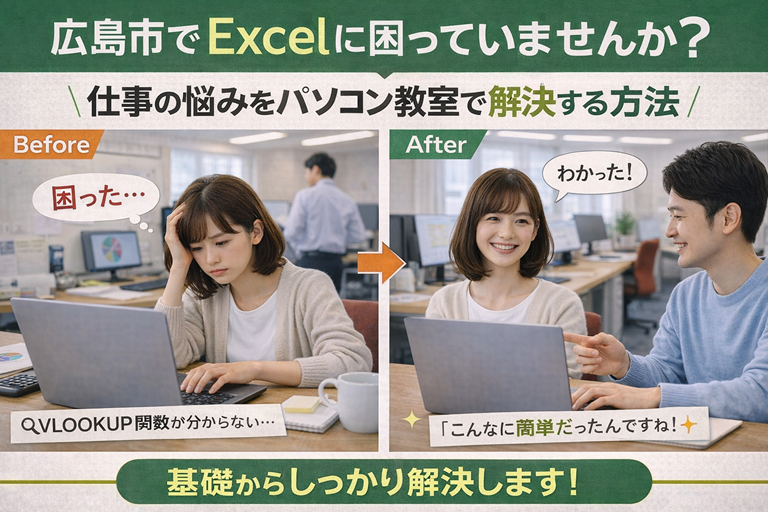「広島市 Excel パソコン教室」と検索しているあなたは、